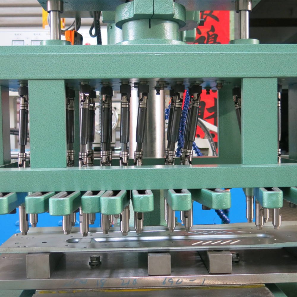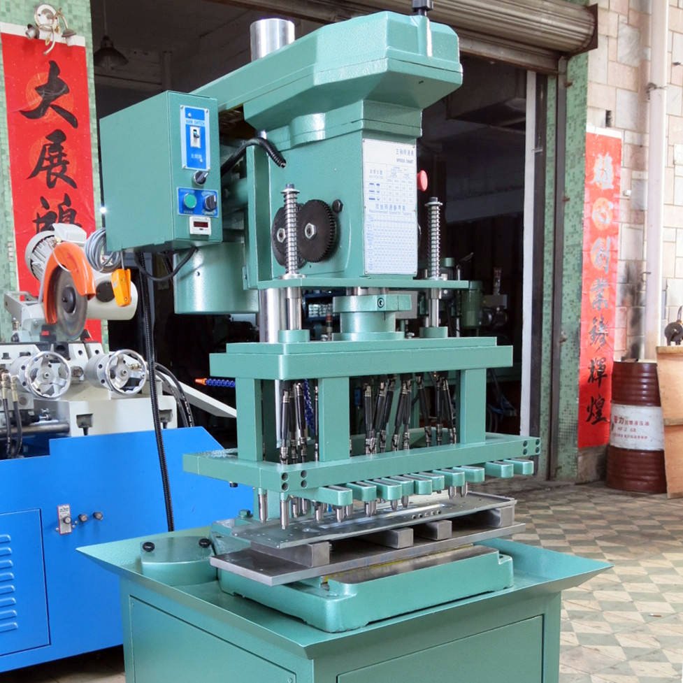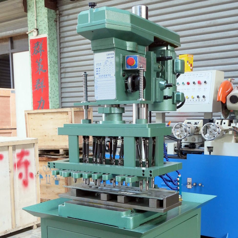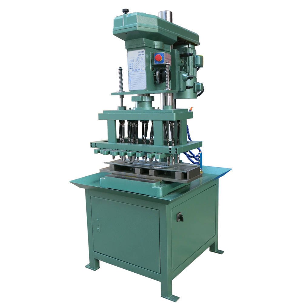 2. Press the switch, and the machine’s multiple spindles automatically chamfer, drill, and tap.